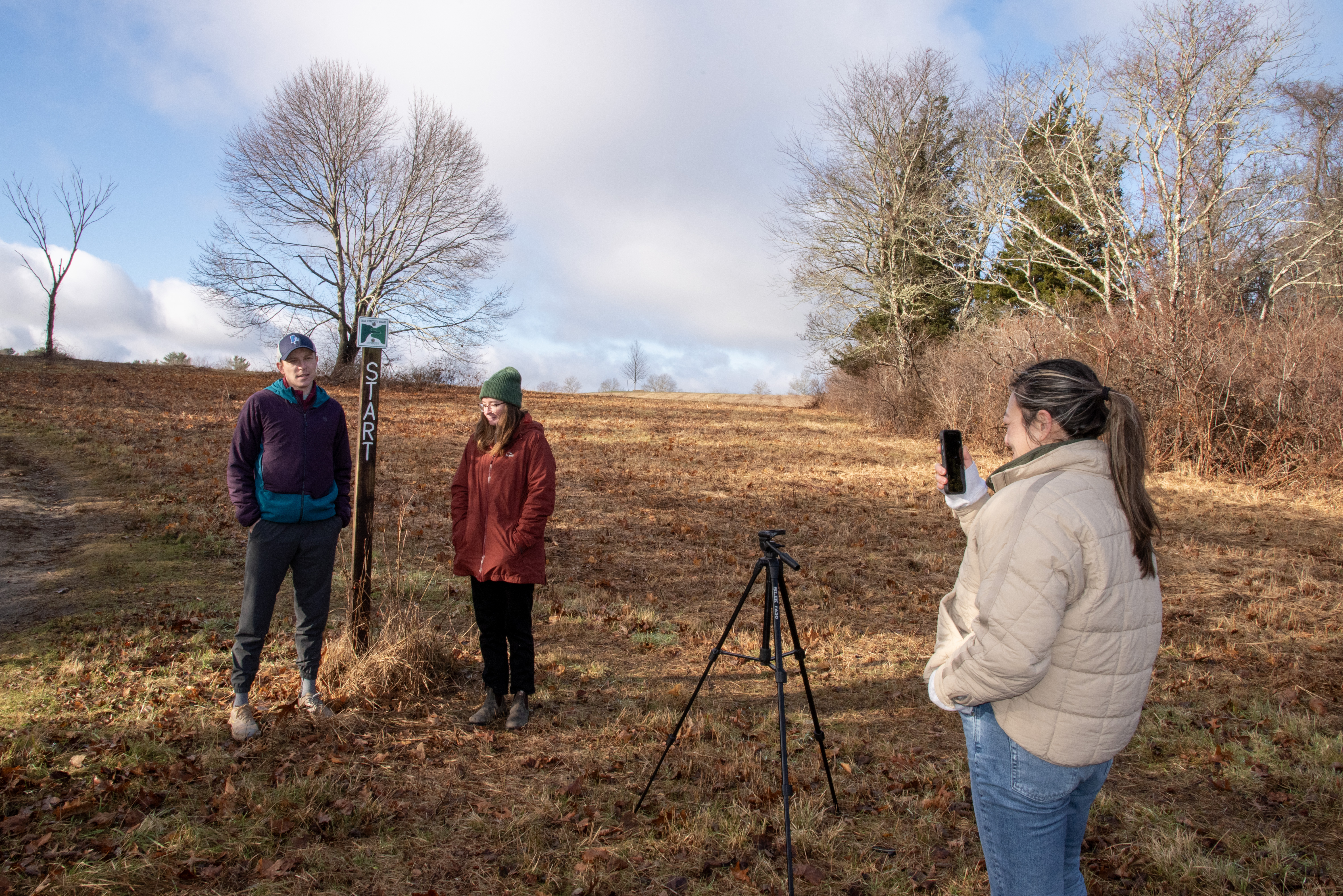 The stars align for the four of us to meet up on this cool Monday morning: Me, the new Bay Circuit Trail (BCT) Coordinator; Appalachian Mountain Club Social Media Manager Meghan Lien; AMC Content Developer Matt Morris; and the man of the hour, Cole Crosby, the current Fastest Known Time (FKT) holder for the BCT. We interview Cole at the scenic southern terminus of the BCT, where his FKT race of the Bay Circuit began on Nov 9, 2023. Cole ran the length of this 230-mile trail in two days, five hours, 51 minutes, and 14 seconds. He was supported by his wife, crew, several pacers, and many local onlookers who came out to cheer Cole on in this impressive challenge.