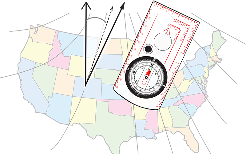 Notice that in some parts of the United States, such as in Rochester, Minn., the declination is zero. But those of us located on the East Coast have to deal with a western declination because the magnetic pole is west of geographic north.