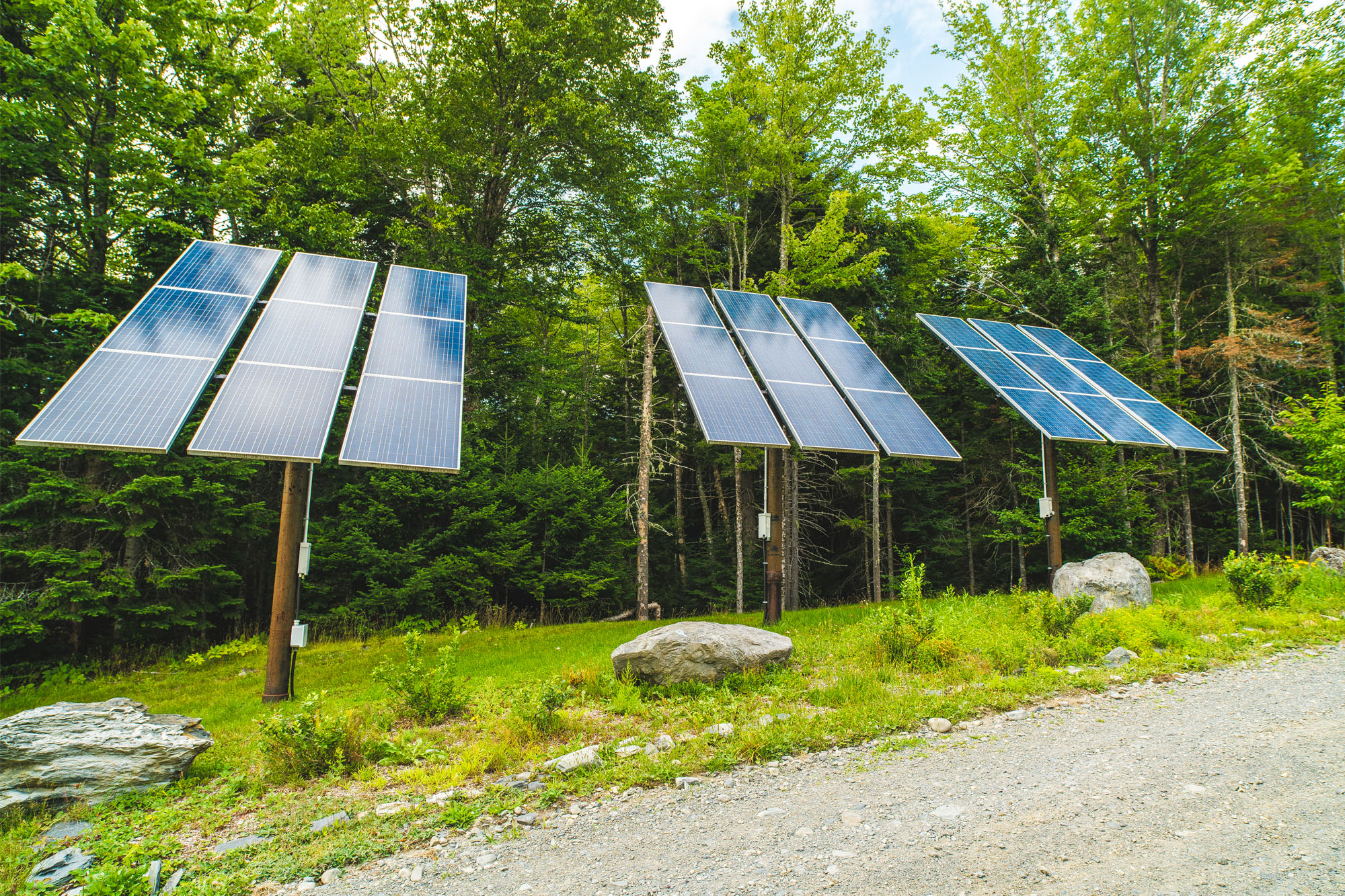 Solar panels at AMC Medawisla Lodge (top) and near Gorman Chairback Lodge, in Maine.