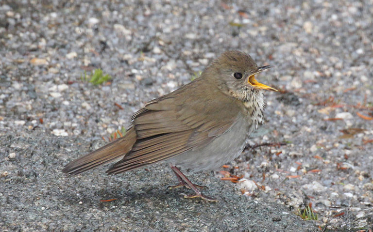 According to the Cornell Lab of Ornithology Bicknell’s thrush “sing a four-phrased, fluting song with a whirling quality,” and calls in harsher notes that sound like “veer” or “queep,” while the gray-cheeked thrush’s song sounds like a mesh of flute notes with a downslur.