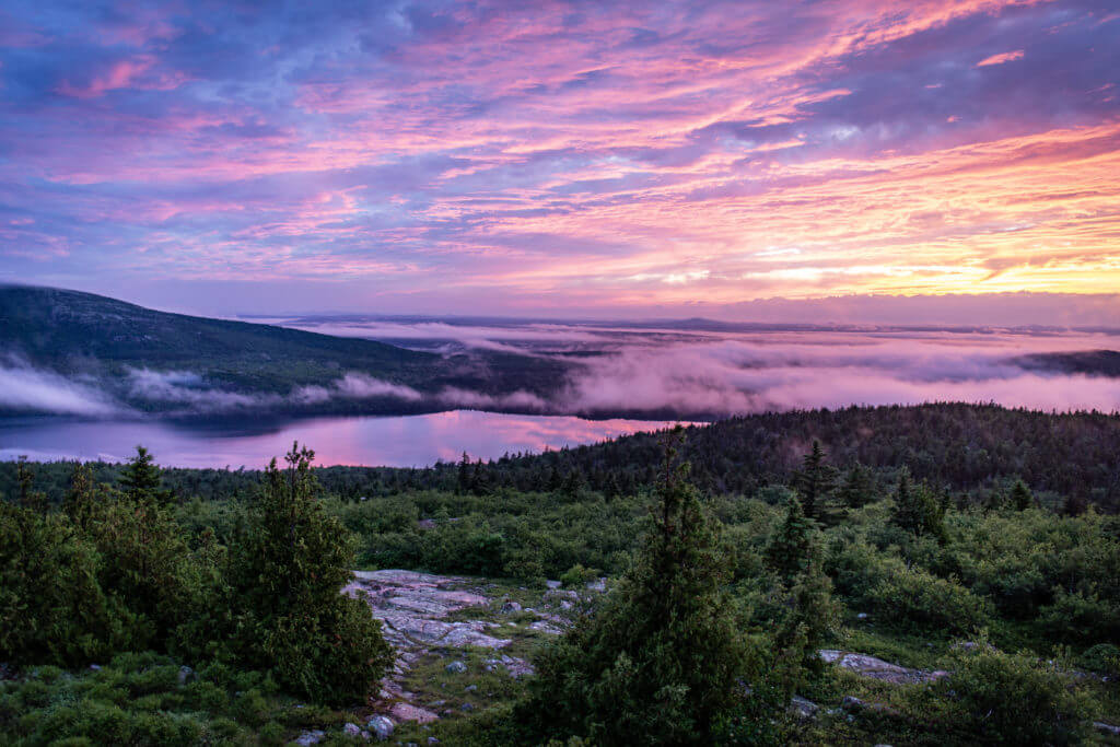 Oct. 9, 2019. Square Ledge, Pinkham Notch, White Mountain National Forest, New Hampshire– AMC Joe Dodge Lodge is in the midground and Mt. Washington (Presidential Range) is in the background.
