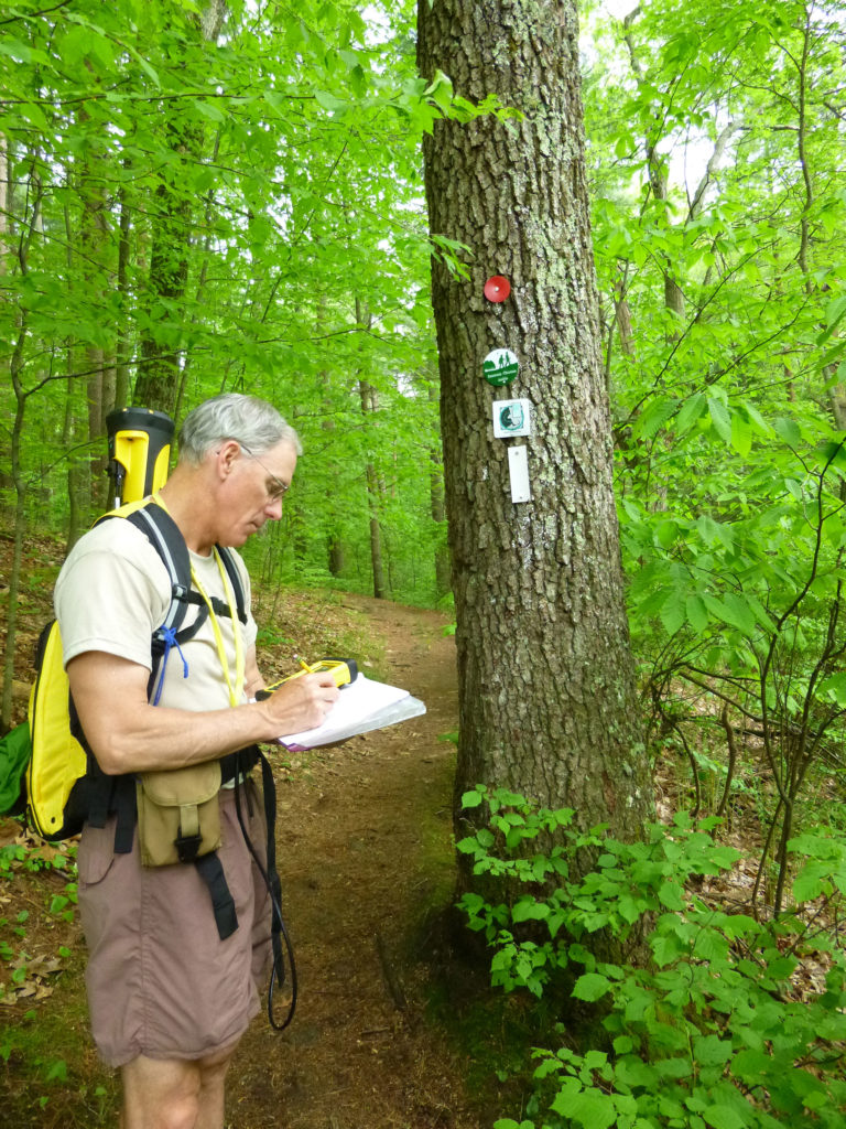 Larry using GPS equipment to survey the Bay Circuit Trail.