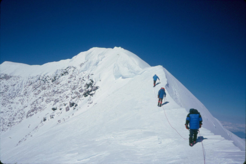 Larry hiking the ridge leading to the summit of Denali in June, 1995