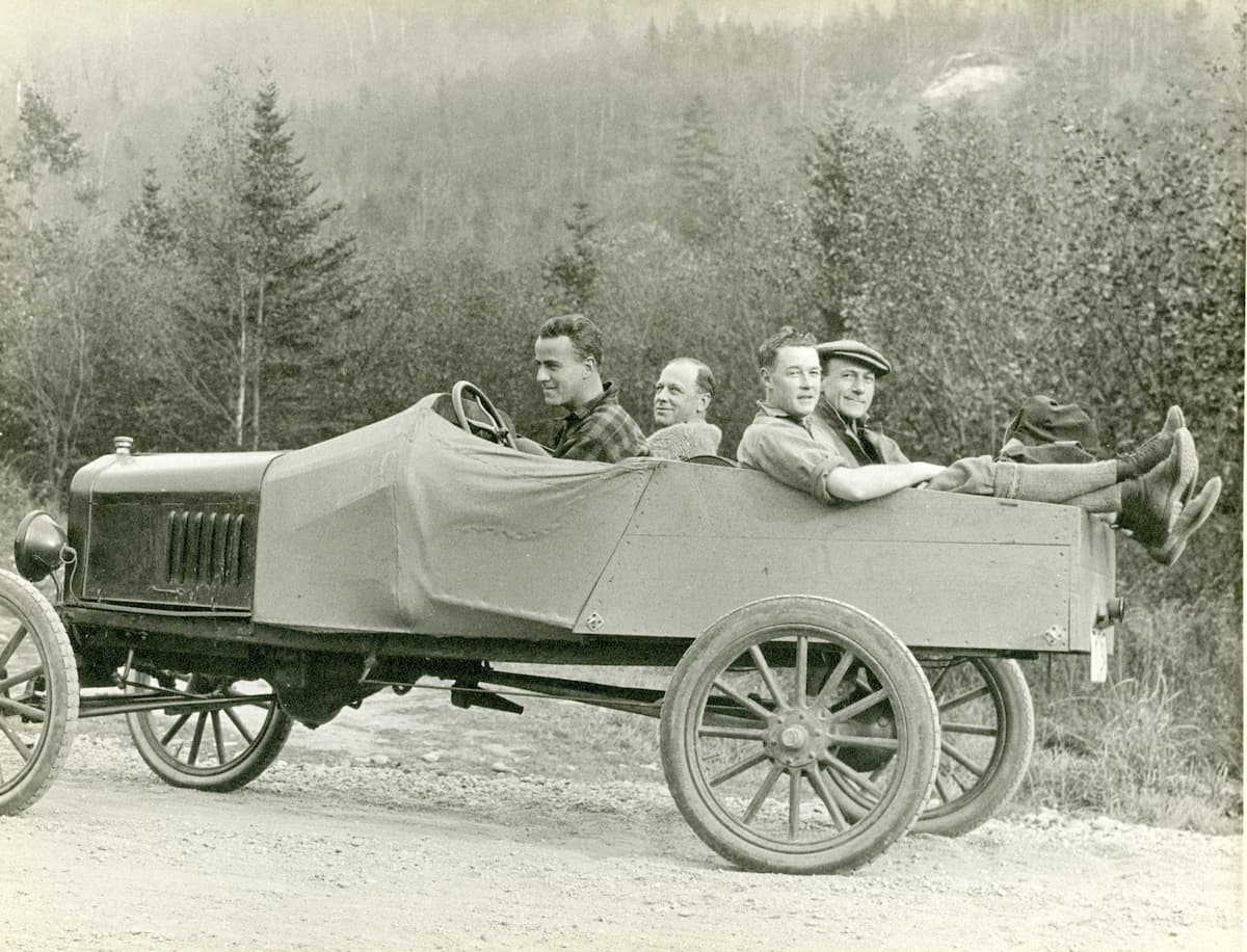 On June 9, 1922 I bid my folks adieu in Manchester-by-the-Sea, Massachusetts, and climbed in the only piece of rolling stock the club owned at the time, a Model T Ford truck, along with “Red” MacGregor, Johnnie White and Ed Nelson. It was a real expedition to the White Hills in those days over the road as there was no paved highway north of Rochester, except through the center of North Conway, and we had the usual tire trouble that hot June day and finally arrived late in the day, just ahead of a thunder shower, at Pinkham Notch Camp, where I was to be the hutmaster that summer.