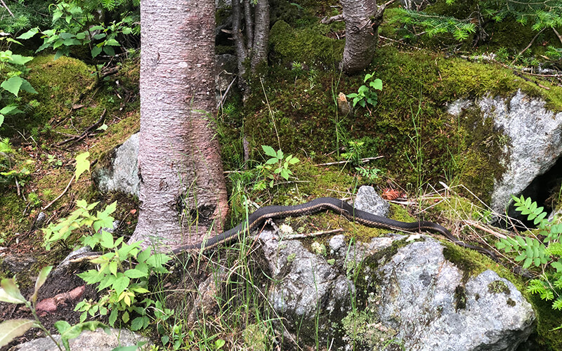 Snakes are among the wildlife common around—and sometimes inside—Carter Notch hut.