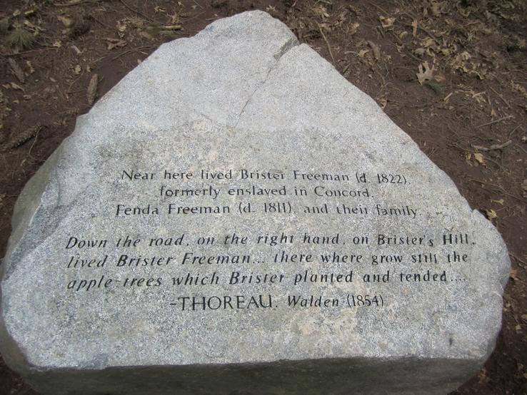 Thoreau wrote particularly fondly about Brister Freeman, who was given as a slave to Dr. John Cuming when he was nine years old as a wedding present. Freeman was enslaved for twenty-five years, managing the Cuming estate where he acquired farming skills and learned about local politics. After fighting in the Revolutionary War, he advocated for his freedom and took his rather apt surname. With the money that he had, he purchased the “old field” in Walden Woods and set up a two-family household with another African American Revolutionary War soldier. He had three children with his wife, Fenda Freeman, who was known to tell fortunes. Though he was frequently harassed by local officials and had his land taken away, he continued to live on what he considered his land. As a result, Thoreau describes him as a rather heroic figure, comparing him to the great Roman general, Scipio Africanus, and the townspeople began calling what was once known as Stratton’s Hill, Brister’s Hill. Today, the site of his home is marked on Thoreau’s path.