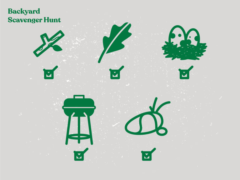 Can your kids find five different kinds plants? How about three different kinds of flowers? Can they tell the difference? Think about the colors of the leaves or petals, the shapes of the branches or stems, and how tall or short they are. Can they find an item that’s a circle, a triangle, or another shape? To make this even harder, cut shapes out of a piece of paper and have your kids try to match the shape to something in nature. Find household items that are brightly colored, like old paint swatches, parts of cereal boxes, bathroom towels, or running shoes, and have the kids find natural items in those colors. But be sure kids know that when we’re looking for different nature, we don’t pick them! This is a great chance to tell kids about Leave No Trace. Here’s a handy plant identification guide you can use.