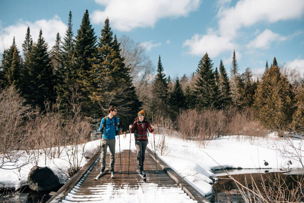 New England offers a plethora of great Nordic centers to visit. In New Hampshire’s White Mountains, Jackson Cross-Country Ski Touring Center, Great Glen Trails, and Bretton Woods Nordic Center are just some of the great options. Each of these locations provide the opportunity to ski through beautiful spruce and fir forests while looking for snowshoe hare and other animal tracks along the way.
