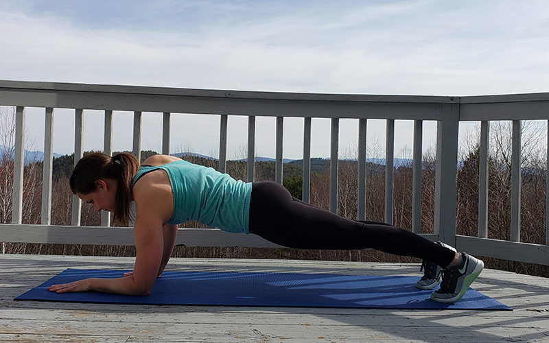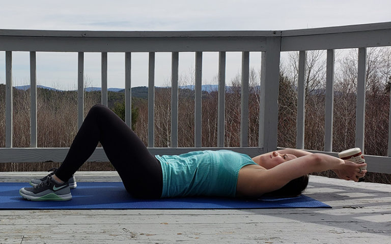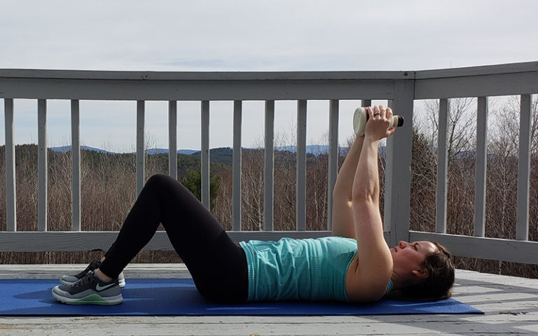 “Many movements can be done with just your body weight or by getting creative with items around the house for added resistance,” she says. “Think gallon milk jugs. Full, they are about 8 to 9 pounds each and half-filled they’re about 5 pounds. Adjust the volume to match what resistance you are looking for.”