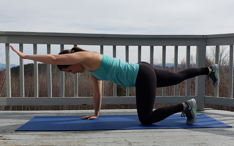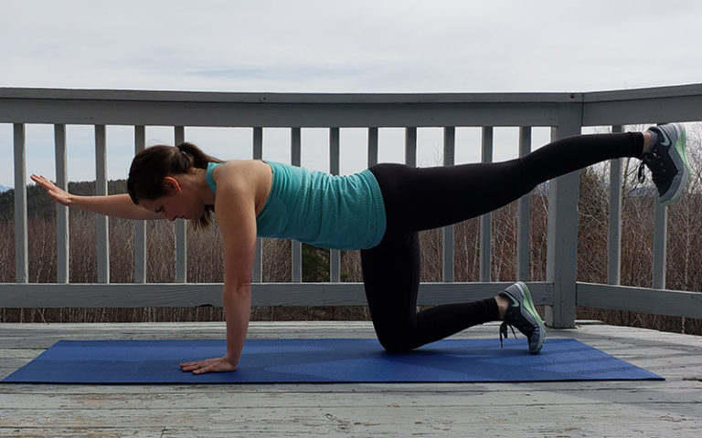 How it helps paddlers: This is an excellent exercise to train the body to stabilize the low back during upper and lower extremity movement.