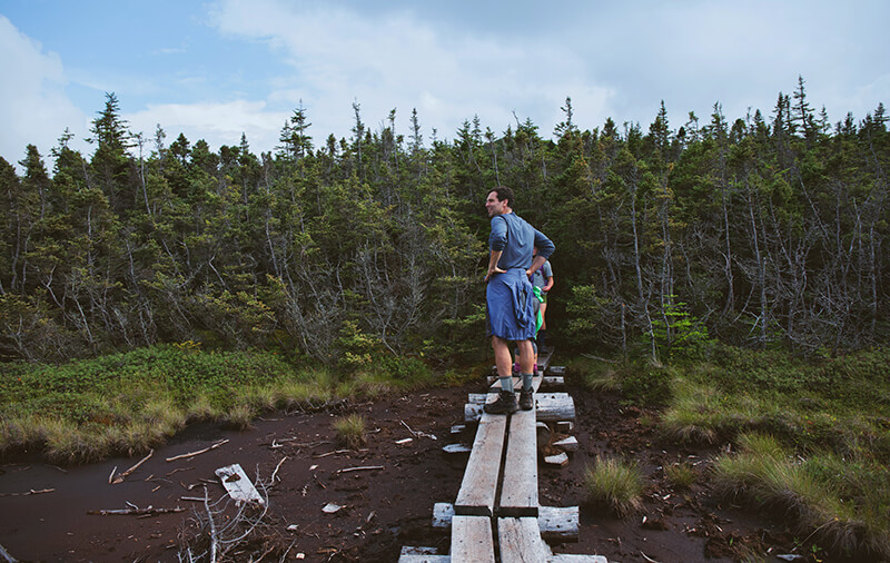 On some muddy trails, trail builders will install platforms for hikers to use and prevent erosion to the area.
